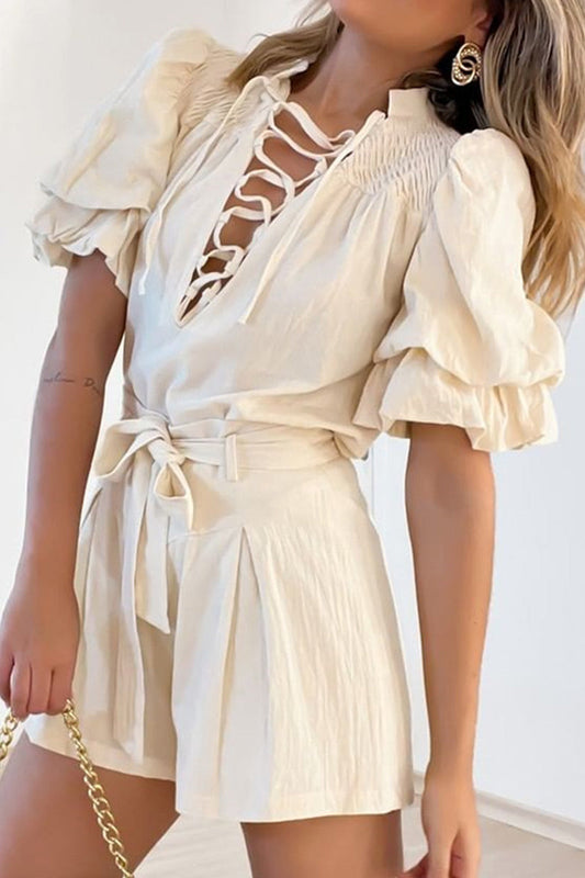 Mila - Ensemble deux pièces, blouse asymétrique ample avec combinaison de couleurs contrastantes + short élastiqué