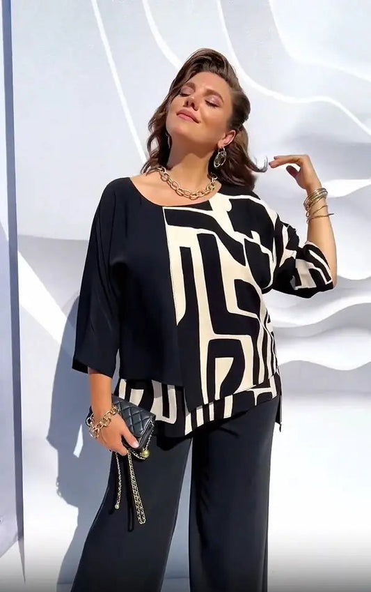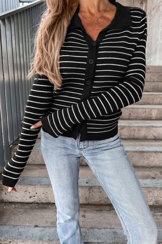 Nikka - Blouse rayée à manches longues avec col polo et boutons