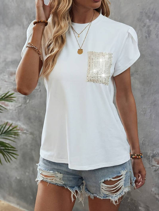 Serenella - Ensemble casual top à col rond manches courtes et pantalon ample