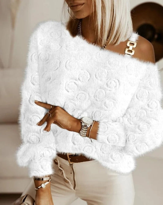 Scarlett - Blouse décontractée à col rond, volants et épaules dénudées
