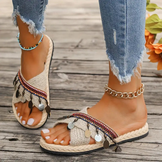 Glenda - Sandales plates à bout rond et blocs de couleurs