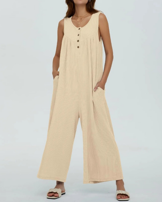 Jemma - Combinaison décontractée sans manches à col en V et jambes larges