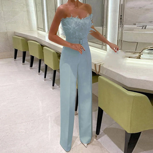Roxanne - Élégante combinaison à jambes larges avec volants et ceinture
