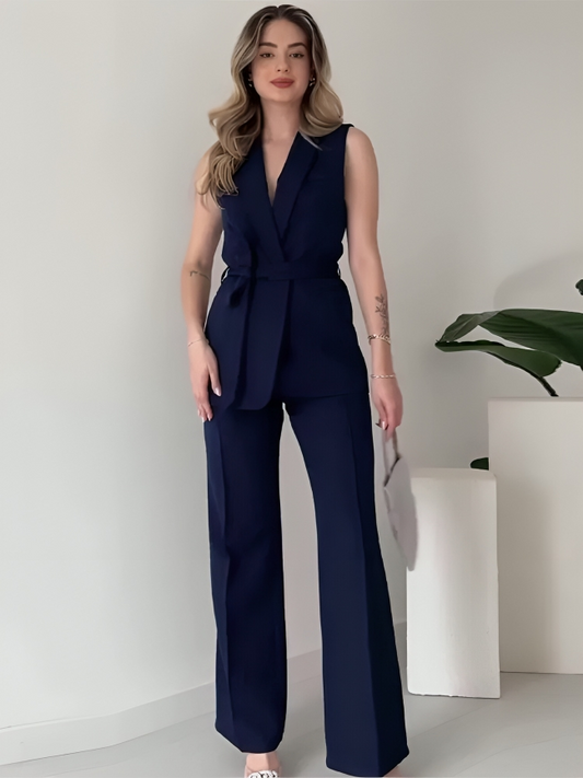 Livia - Ensemble élégant avec blazer sans manches et pantalon taille haute
