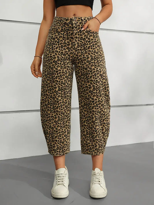 Ayana - Pantalon à jambes larges avec imprimé léopard et nœud sur le côté