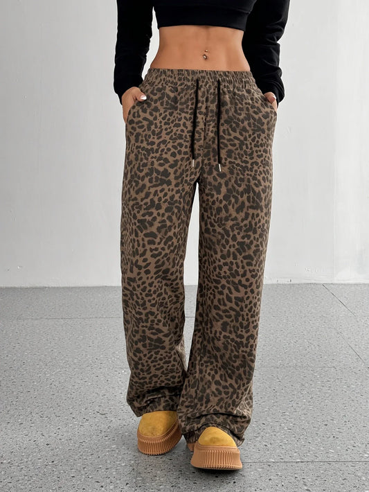 Rhoda - Pantalon de survêtement à cordon de serrage imprimé léopard pour femmes