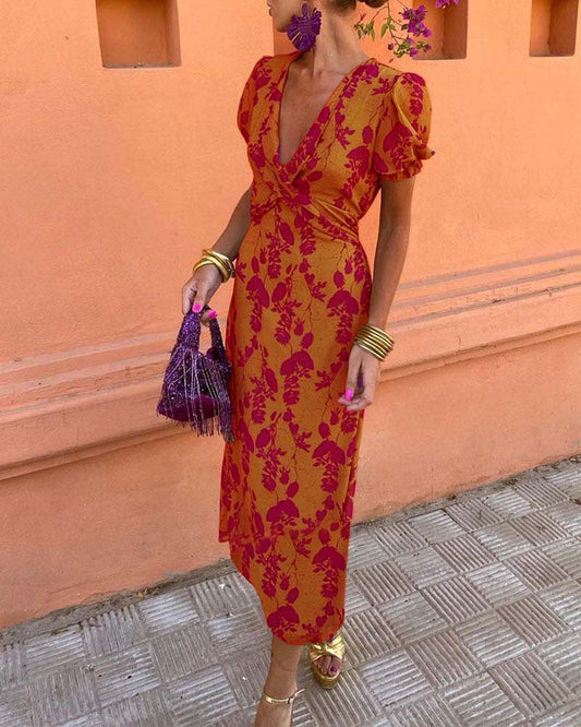 Evalena - Robe longue élégante à manches bouffantes pour femmes