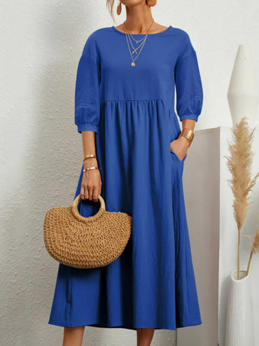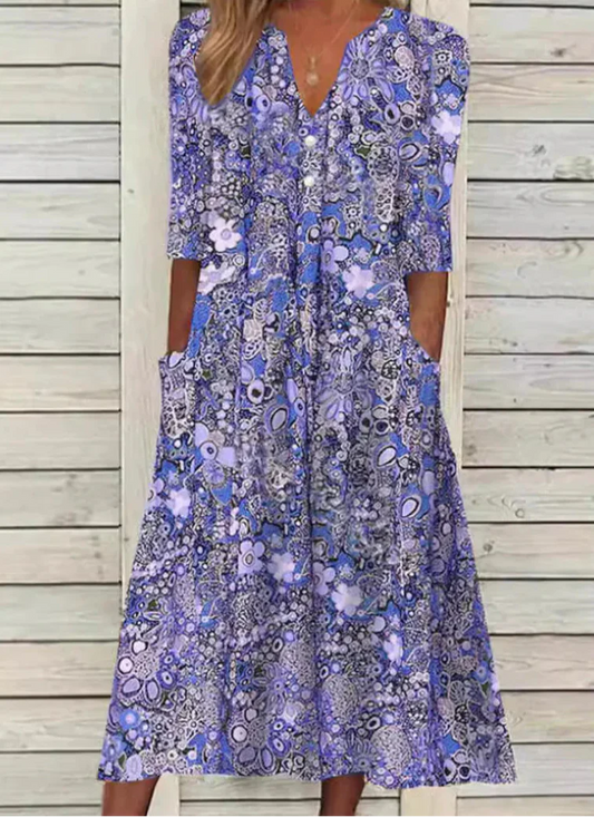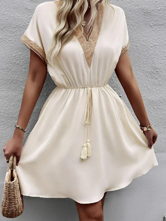 Luvenia - Robe midi bohème avec laçage et coutures à col en V