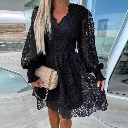 Jessel - Élégante robe courte portefeuille à col en V et manches à volants fleuris