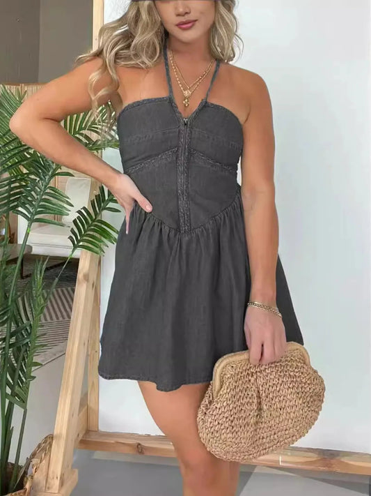 Helena - Mini-robe casual sans manches à col V avec dentelle