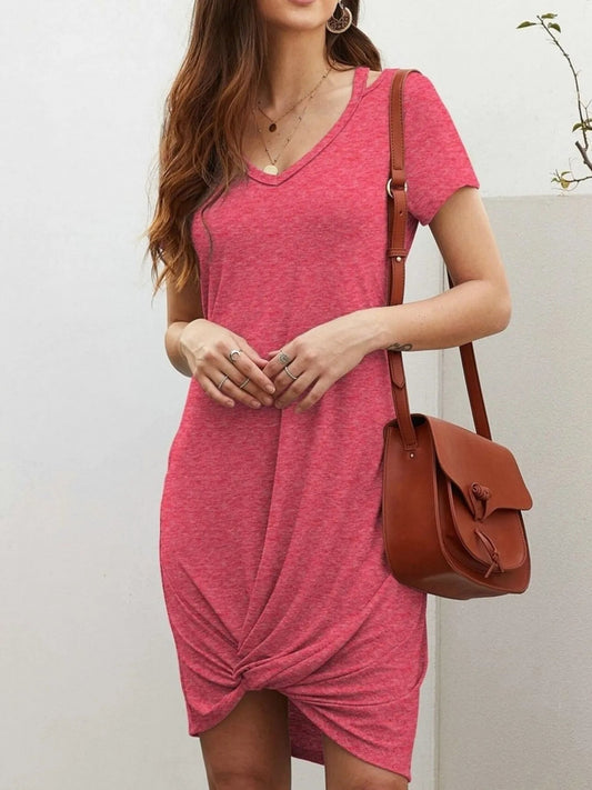 Celestina - Robe décontractée à col en V et nœud torsadé