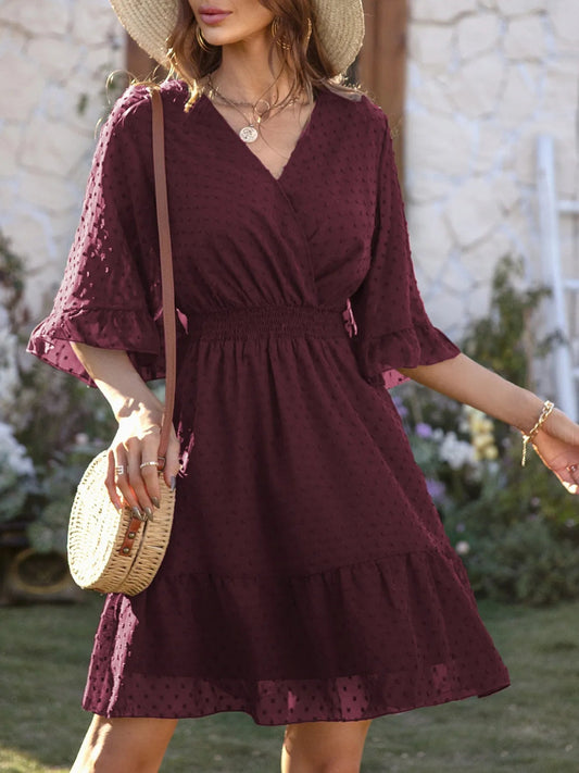 Elsie - Élégante robe courte à col en V et manches 3/4