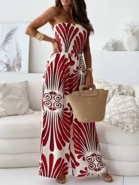Daisy - Élégante combinaison imprimée à jambes larges et bustier froncé