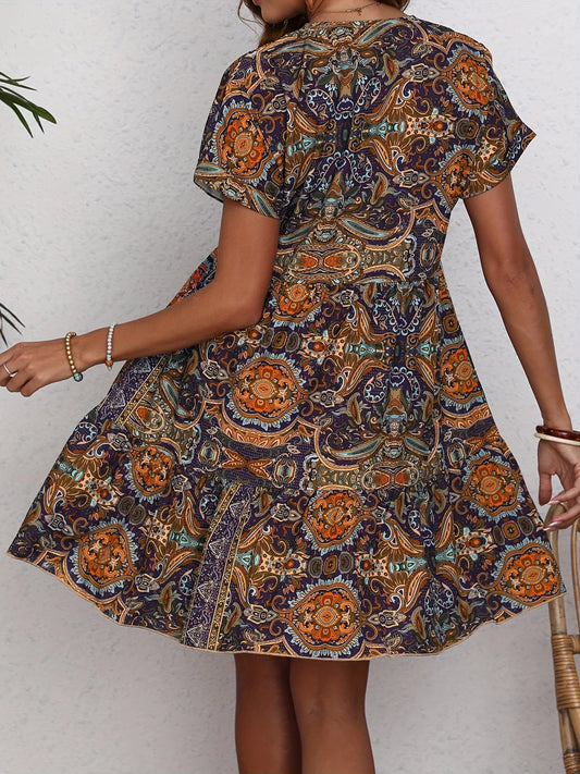 Margery - Bohemian Floral Print V-Neck Sleeveless Dress