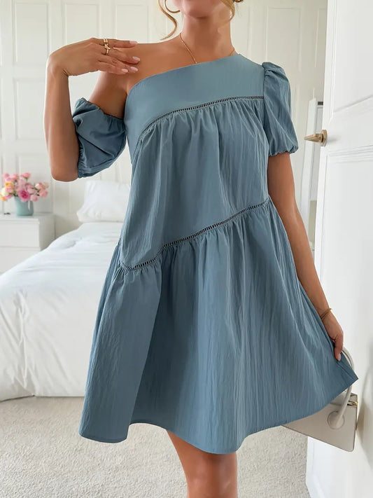 Cressida - Robe élégante asymétrique à volants et manches courtes pour femme