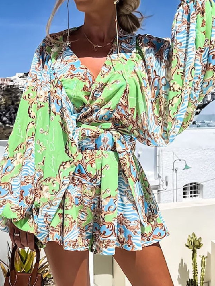 Merryn - Top élégant imprimé à manches longues et ensemble short d’été